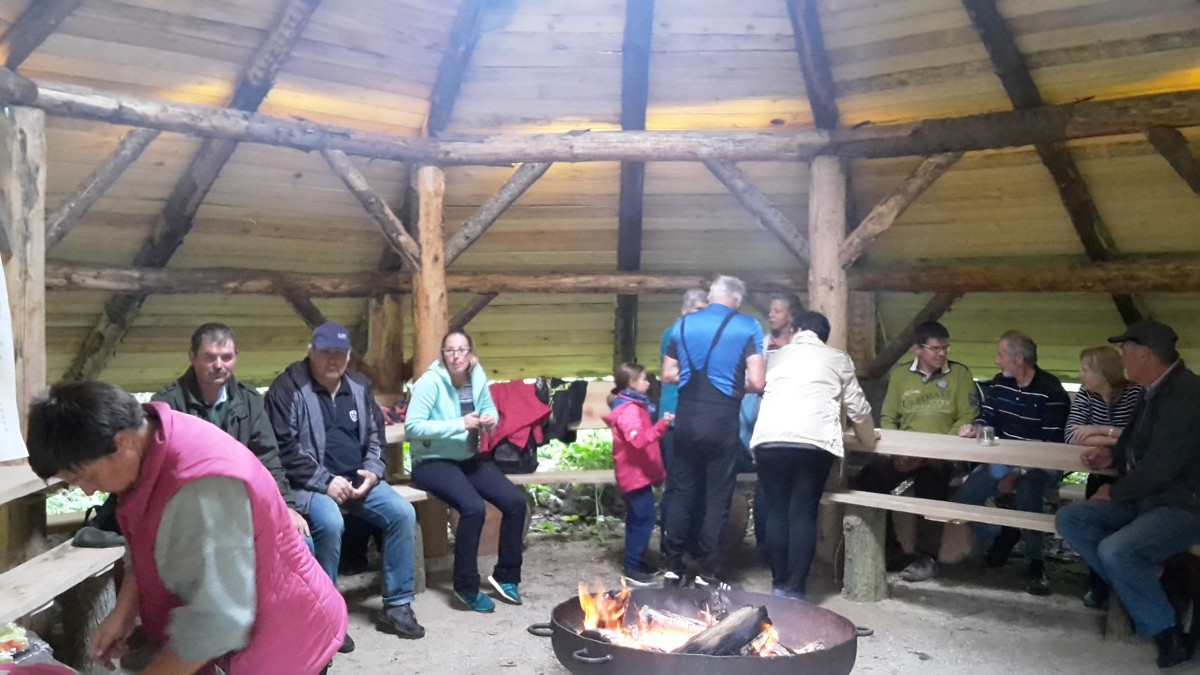 In Kisserow gesellten sich noch welche zur Gruppe. Durch den Wald, über die Königsbrücke, die den Klostermühlenbach überspannt, liefen wir in Richtung Waldpavillon am Klimawald. Dort genossen wir unsere verdiente, einstündige Pause. Dafür hatten wir Schmalzstullen und Eintopf vorbereitet. Wir bedanken uns bei den Müritzfischern, die für uns durch Rico Klein eine schmackhafte Kartoffelsuppe gekocht hatten.